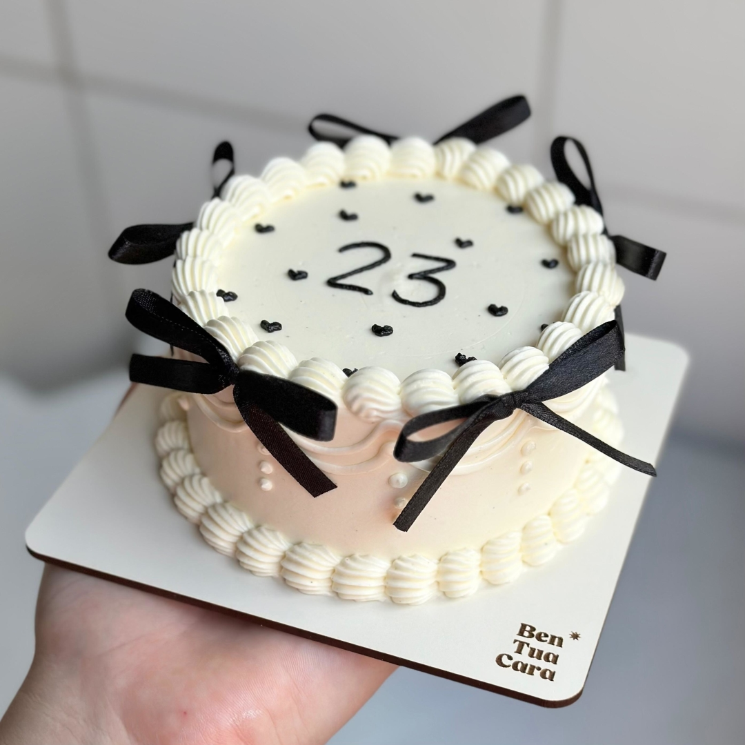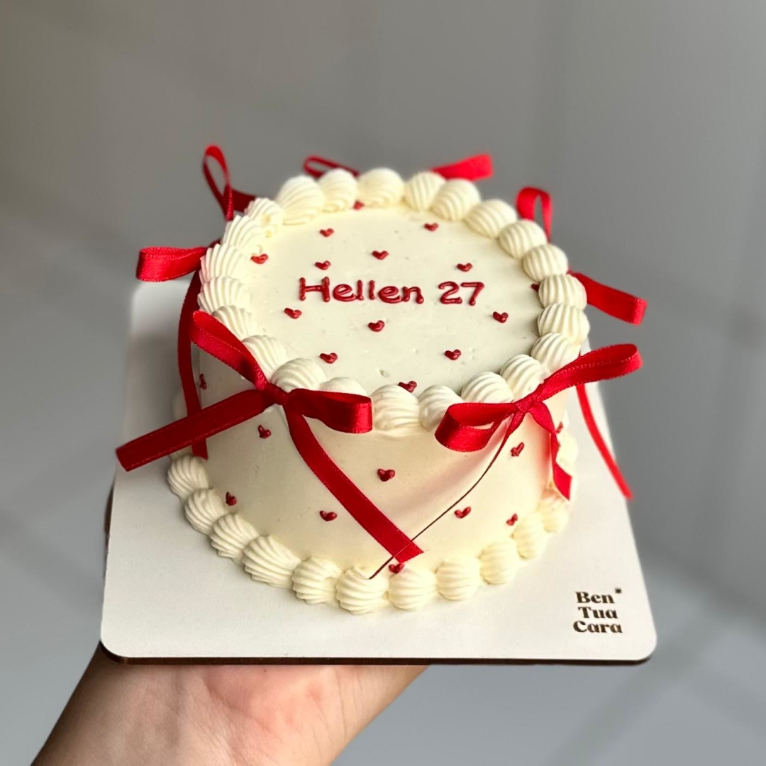 Coberto com creme de leite ninho, leve e lisinho na cor natural. A decoração desta opção é com frase e um trabalho de bico com detalhes vintage. Escrita e laços na cor da sua preferência de acordo com a disponibilidade abaixo (Não pigmentamos a cobertura*)